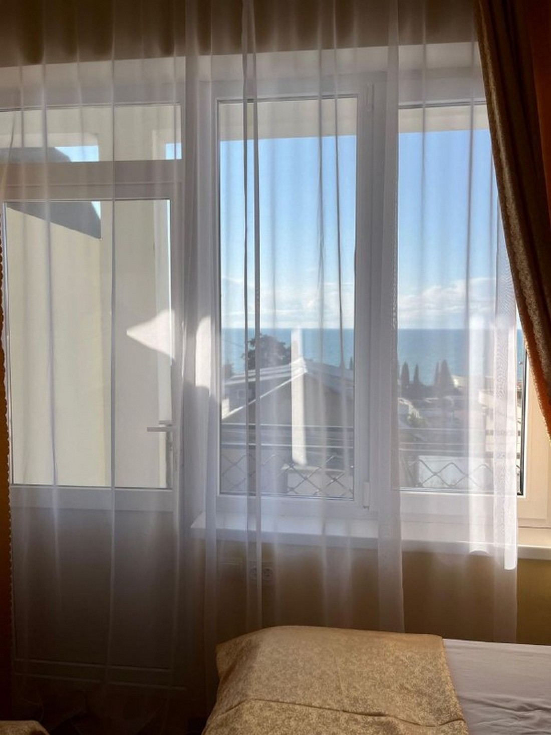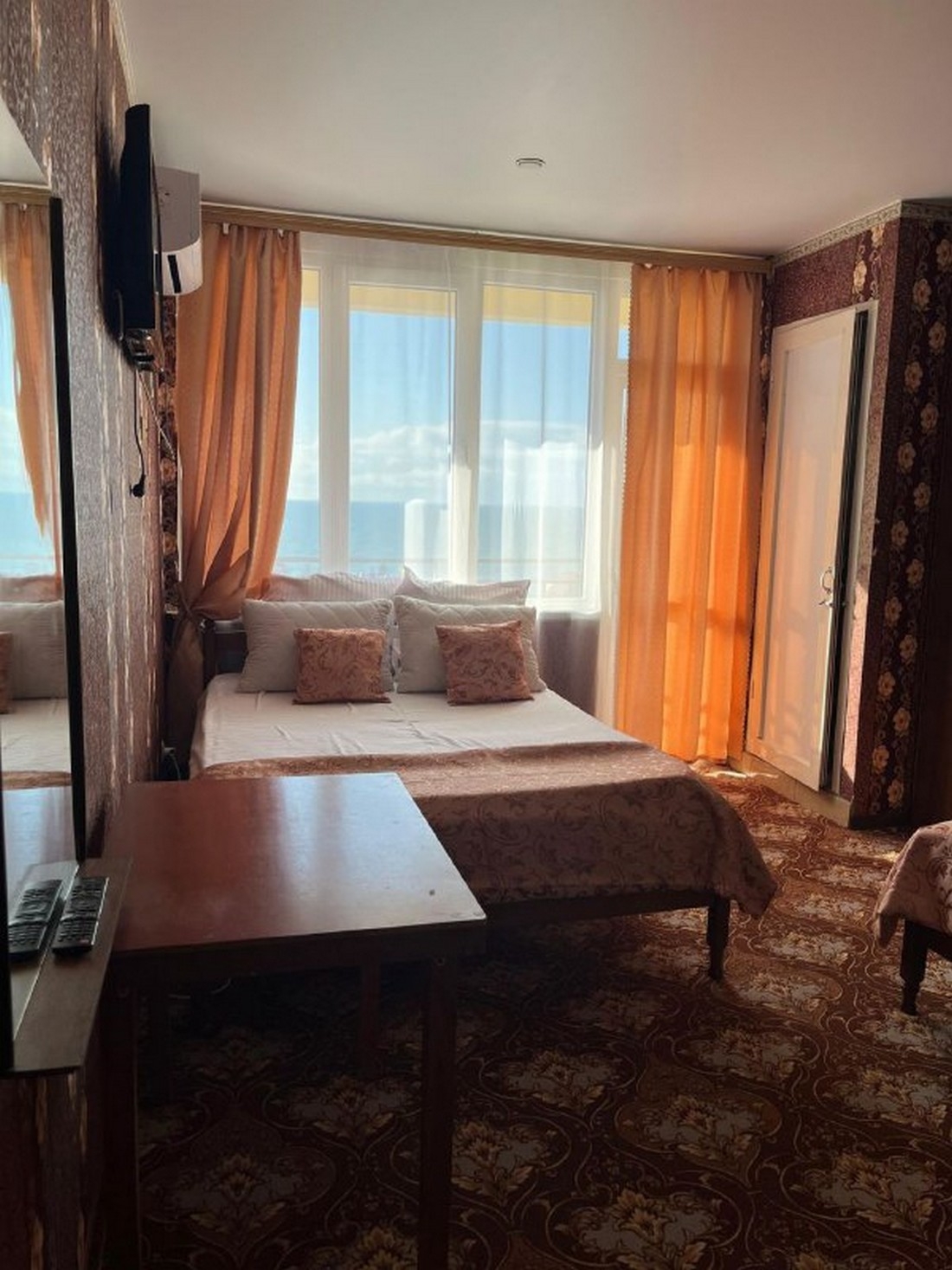 Двухместный стандарт площадью 15 кв.м с балконом с видом на море. Подходит для размещения 2 человек. Имеет спальню с приятным интерьером. В номере: 1 двуспальная кровать или 2 односпальные кровати. Имеется телевизор, кондиционер, отопление, шкаф, вешалка, рабочий стол, туалетный столик, стулья, холодильник. Индивидуальная ванная комната: душ, раковина, туалет. В стоимость входит: постельное бельё, полотенца, ванные принадлежности (шампунь, гель для душа, мыло, зубной набор). WI-Fi бесплатно на всей территории. Бесплатная частная парковка на территории.
