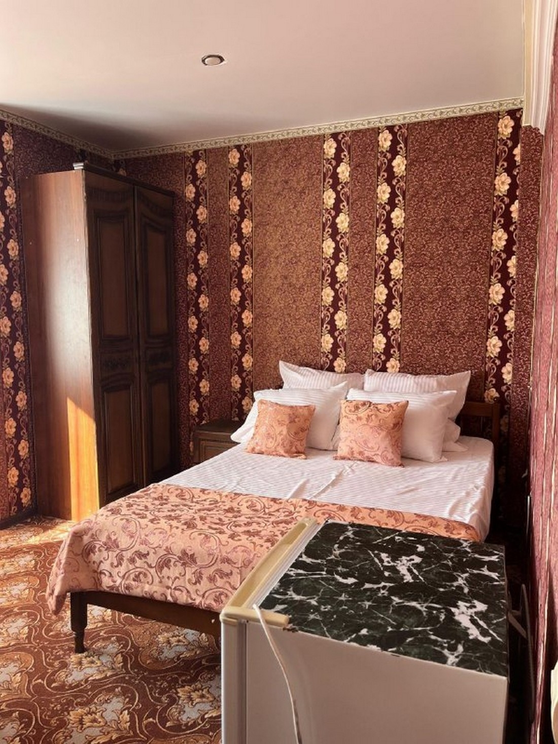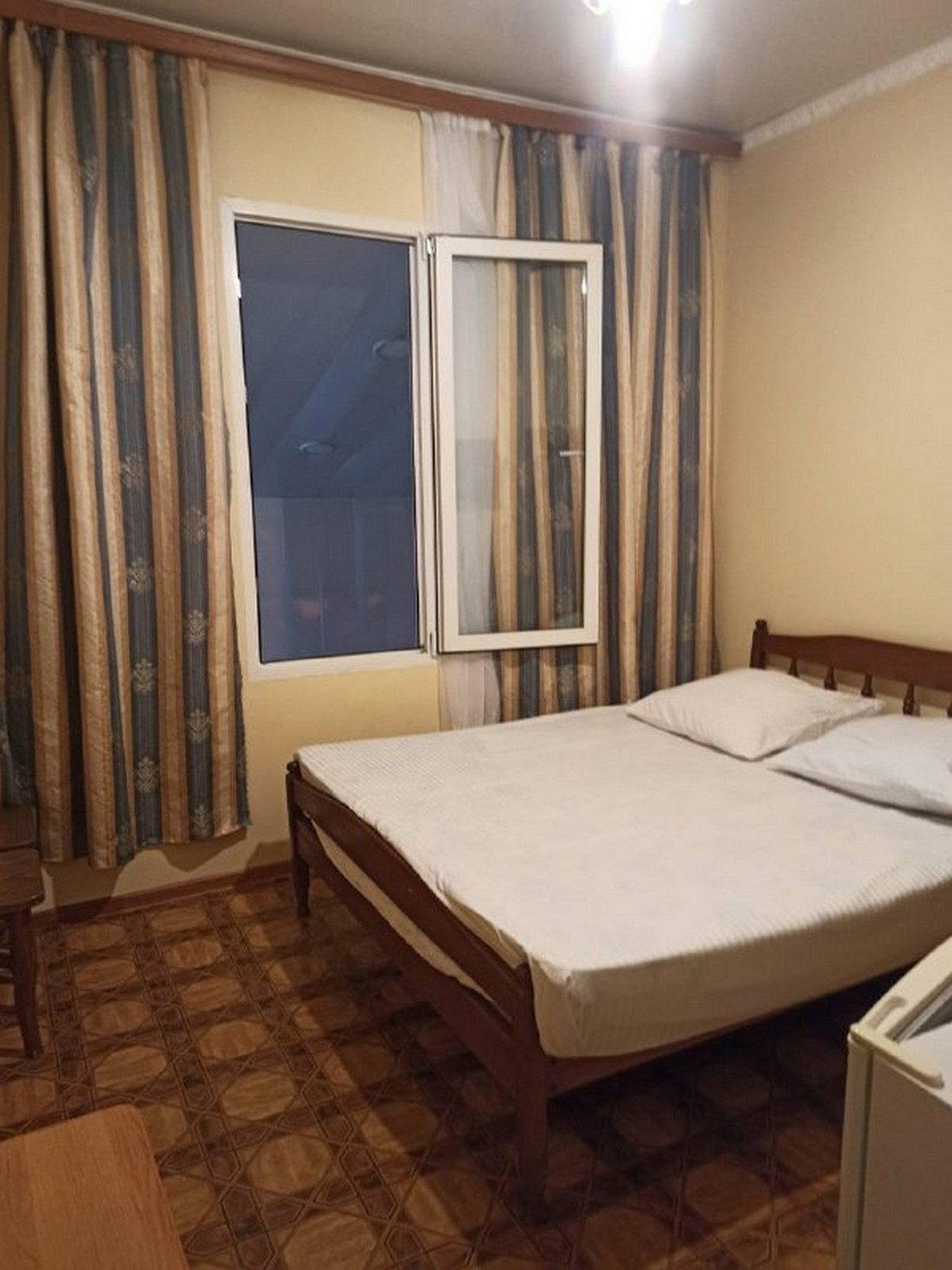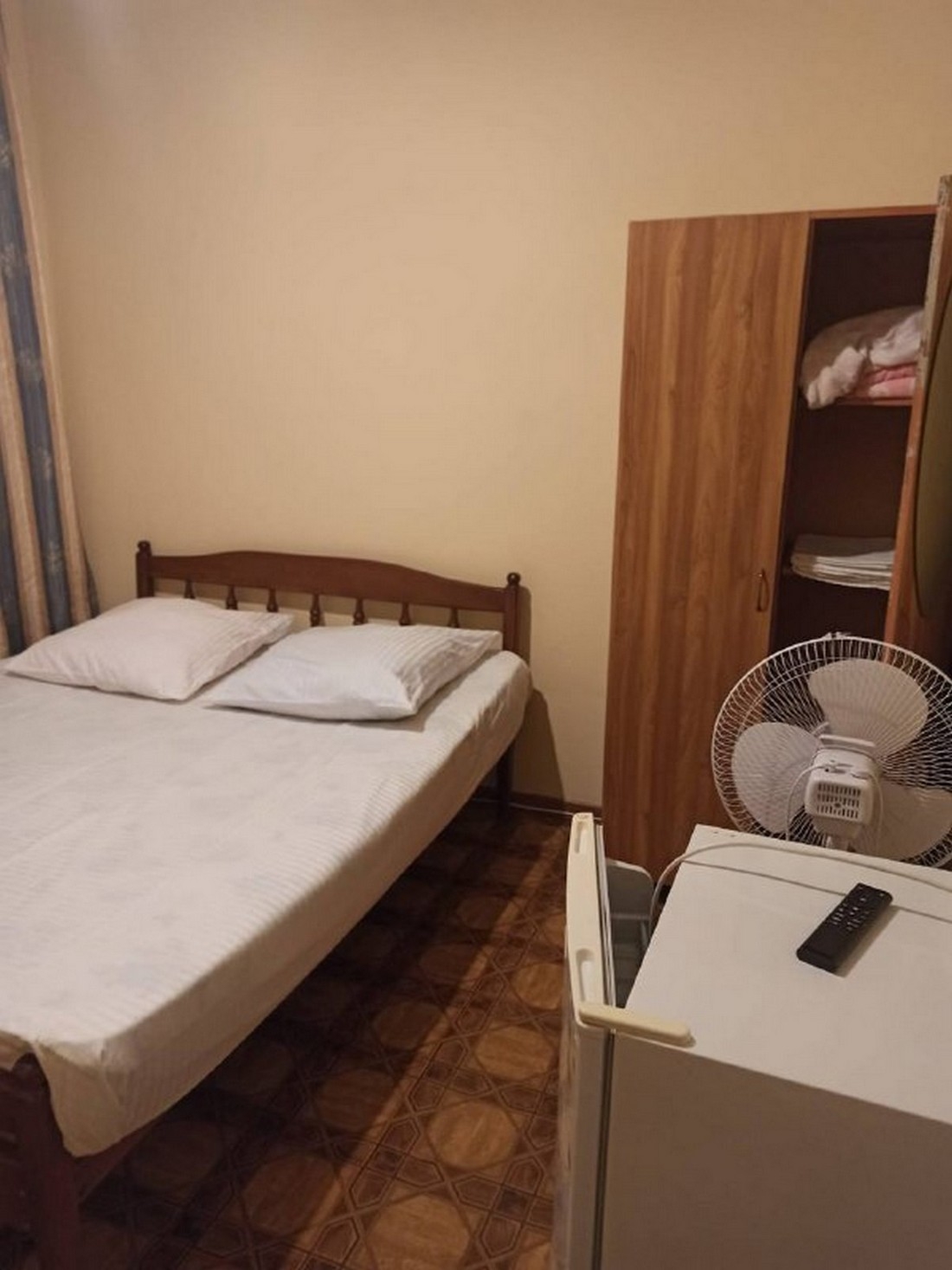 Двухместный эконом площадью 12 кв.м. Подходит для размещения 2 человек. Имеет спальню с приятным интерьером. В номере: 1 двуспальная кровать. Имеется телевизор, вентилятор, отопление, шкаф, вешалка, рабочий стол, туалетный столик, стулья, холодильник. Индивидуальная ванная комната: душ, раковина, туалет. В стоимость входит: постельное бельё, полотенца, ванные принадлежности (шампунь, гель для душа, мыло, зубной набор). WI-Fi бесплатно на всей территории. Бесплатная частная парковка на территории.