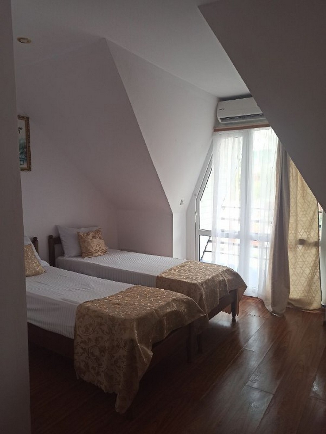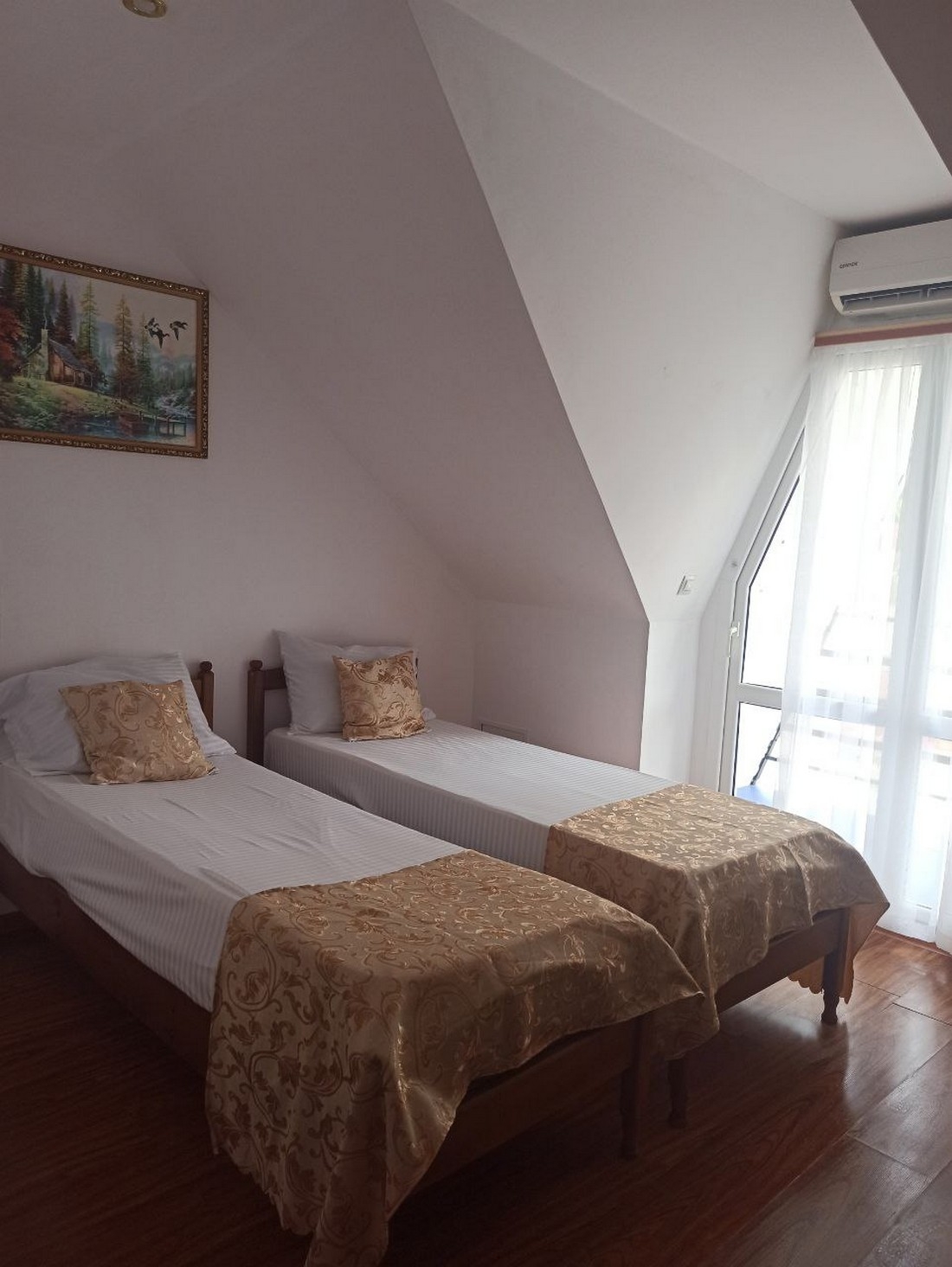 Двухместный стандарт с видом на горы, площадью 15 кв.м с балконом. Подходит для размещения 2 человек. Имеет спальню с приятным интерьером. Балкон. В номере: 1 двуспальная кровать или 2 односпальные кровати. Имеется телевизор, кондиционер, отопление, шкаф, вешалка, рабочий стол, туалетный столик, стулья, холодильник. Индивидуальная ванная комната: душ, раковина, туалет. В стоимость входит: постельное бельё, полотенца, ванные принадлежности (шампунь, гель для душа, мыло, зубной набор). WI-Fi бесплатно на всей территории. Бесплатная частная парковка на территории.